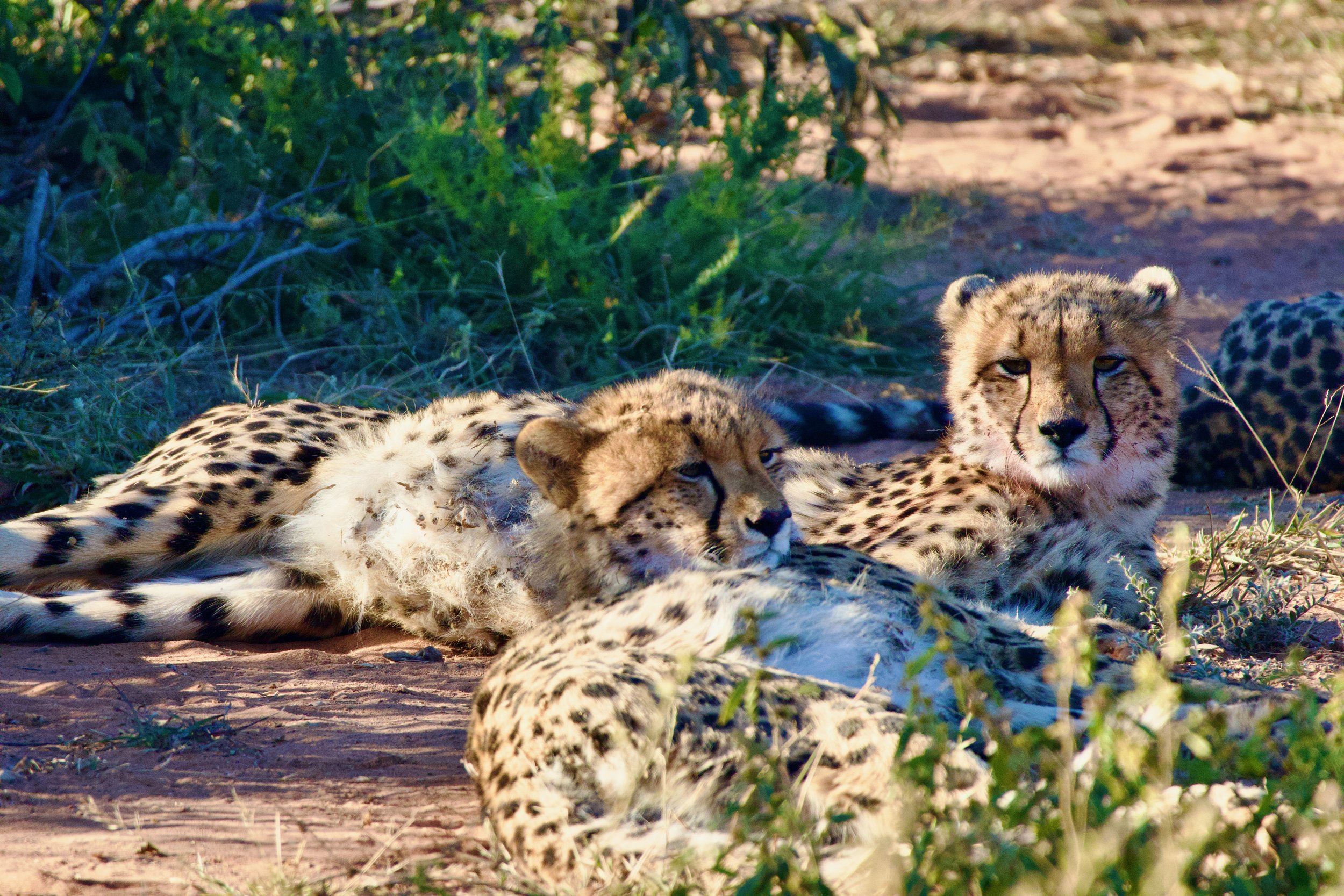 Sub-adult (~18 - 24 months) male cheetahs, resting after filling their bellies with their kill (out of frame — you’re welcome) | Marataba Game Reserve, South Africa